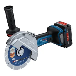 Máy Mài Góc Dùng Pin Bosch GWS 18V-180 PC là một bước tiến đột phá trong dòng dụng cụ dùng pin 18V của Bosch Professional, nổi bật với khả năng sử dụng đĩa mài/cắt có đường kính lên đến 180mm – một kích thước thường chỉ thấy ở các máy mài dùng điện. Điều này mở ra khả năng xử lý các công việc mài, cắt, chà nhám hoặc đánh bóng vật liệu khổ lớn một cách nhanh chóng và hiệu quả hơn đáng kể. Với tốc độ không tải lên tới 6.100 vòng/phút, máy cung cấp đủ sức mạnh để xử lý các vật liệu cứng một cách mượt mà.