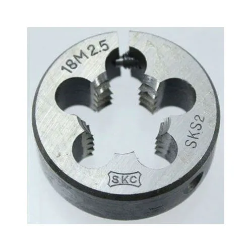 Bàn Ren Ngoài Hệ Mét SKC M18x2.5 Round Dies hay còn gọi là mũi taro ren ngoài được sử dụng để gia công ren trên trục. Phù hợp với việc taro ren bằng tay, sử dụng tay quay bàn ren, gia công thép mềm, gia công ren ít như sửa chữa bảo trì, bảo dưỡng. Dễ dàng tạo ren ngoài trên vật liệu có độ cứng đến HRC 30. Độ bóng cao, mô men xoắn thấp, dễ taro.
