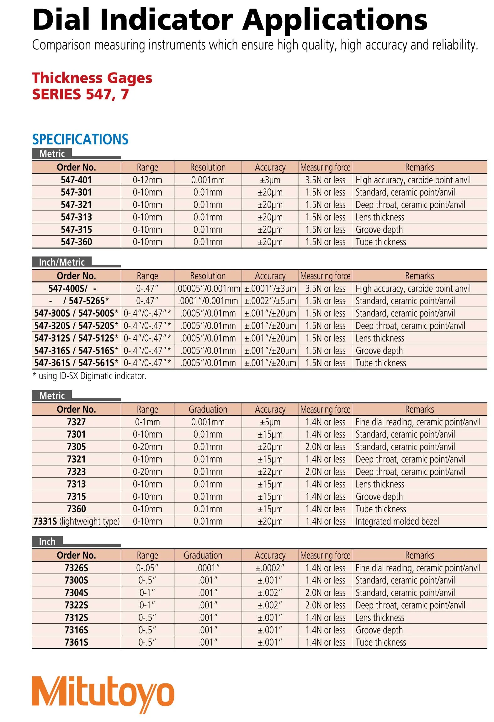 | Dòng sản phẩm | Đồng Hồ Đo Độ Dày Mitutoyo |