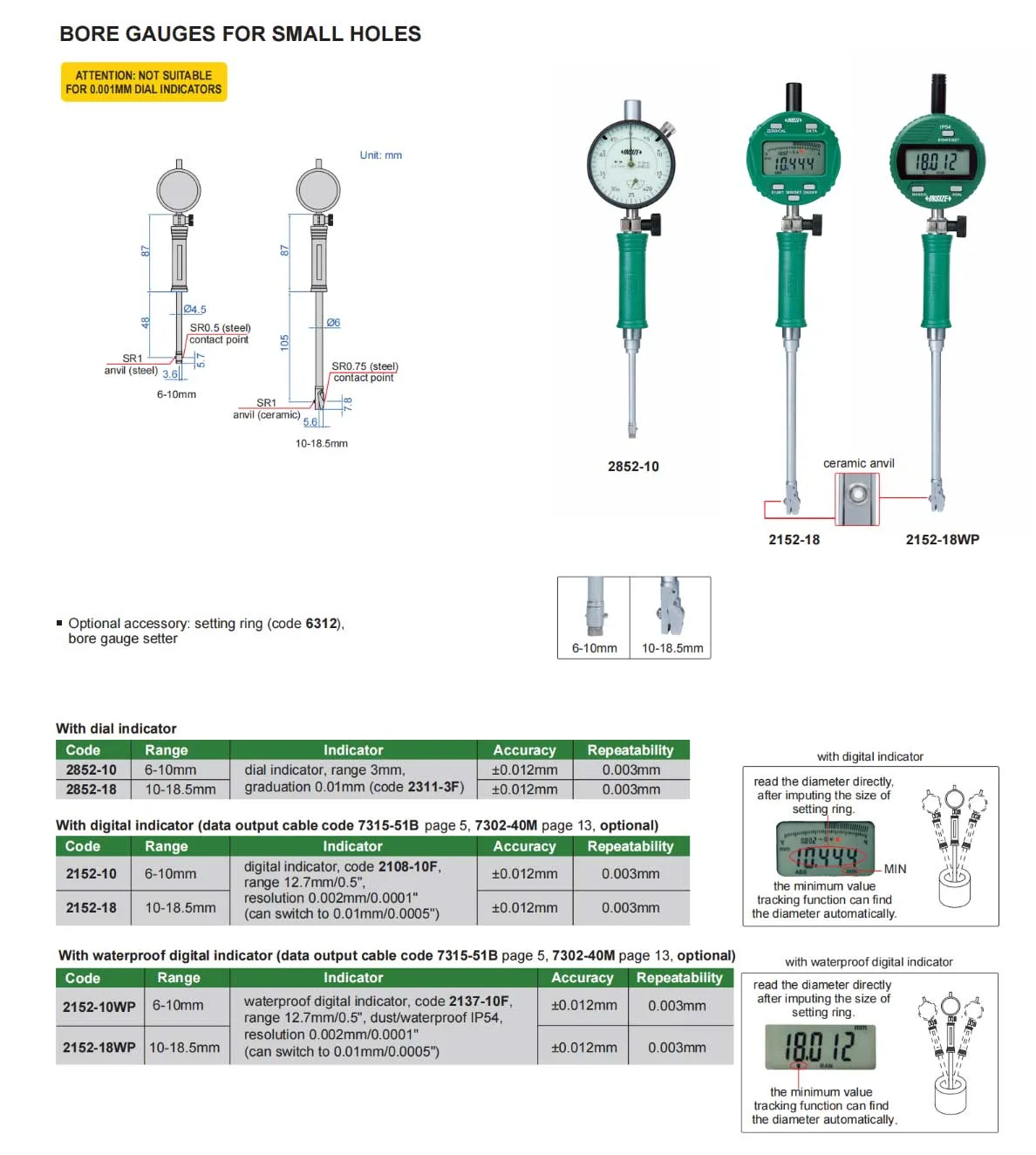 | Phụ kiện tùy chọn | dưỡng đo trụ (mã đặt hàng 6312) |
