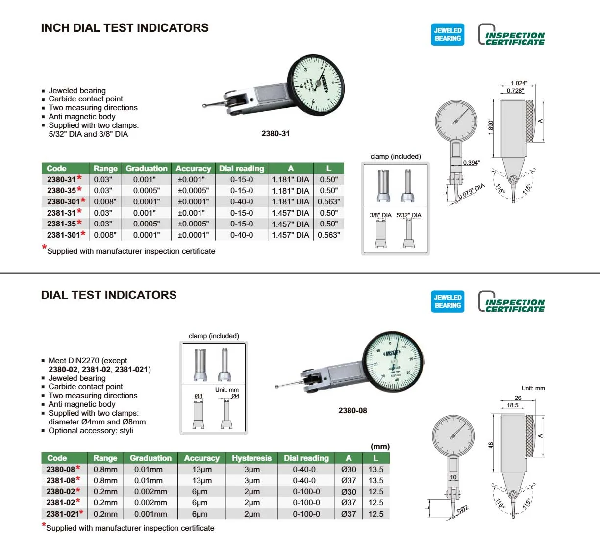 | Dòng sản phẩm | Đồng Hồ So Cơ Khí Insize |