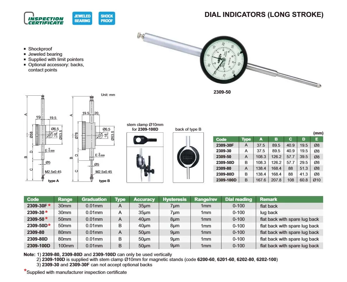 | Dòng sản phẩm | Đồng Hồ So Cơ Khí Insize |