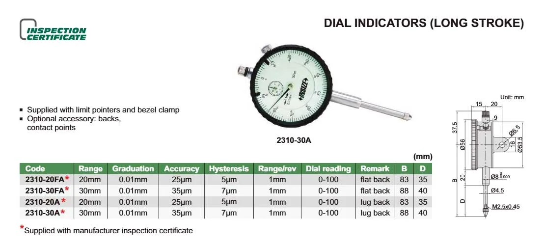 | Dòng sản phẩm | Đồng Hồ So Cơ Khí Insize |
