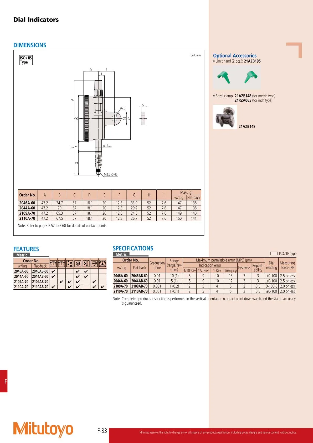 | Dòng sản phẩm | Đồng Hồ So Cơ Khí Mitutoyo |