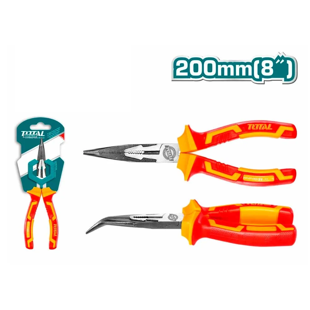 Kìm Nhọn Mũi Cong Cách Điện Total THTIP2481 là một dụng cụ cầm tay thiết yếu cho thợ điện và những người thường xuyên làm việc với dây điện, cáp điện hoặc các thiết bị liên quan. Loại kềm này được thiết kế với phần tay cầm được bọc lớp vật liệu cách điện để bảo vệ người dùng khỏi nguy cơ bị điện giật.