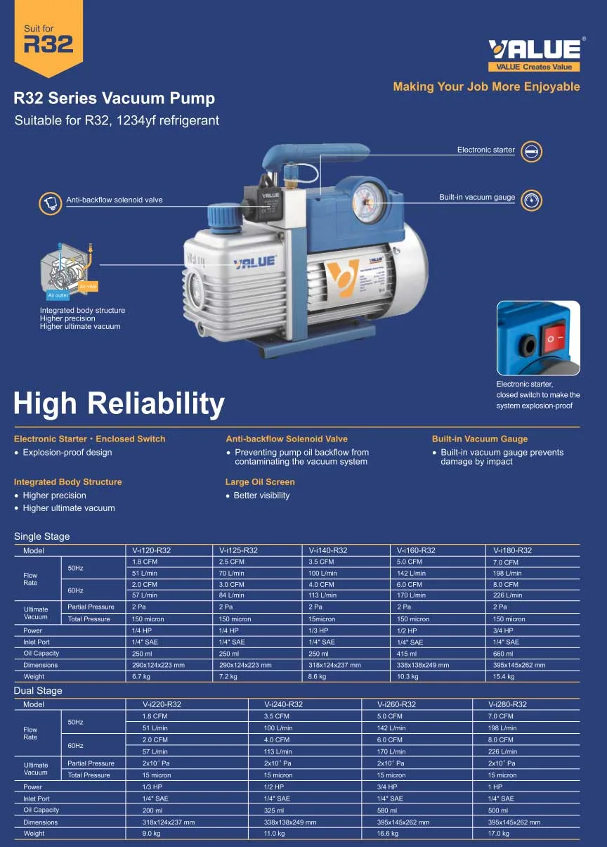 | Mã sản phẩm | Vi125-R32 | 1/4 HP | 70-84 L/min | 1 cấp |