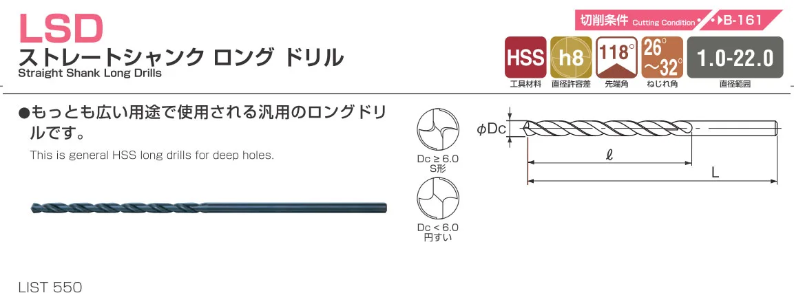 - Mũi khoan Nachi dài List 550 hệ (Metric) thiết kế để khoan lỗ sâu hay lổ ở bất cứ nơi nào cần bổ sung tổng thể của đường kính, mục đích sử dụng rộng rãi.