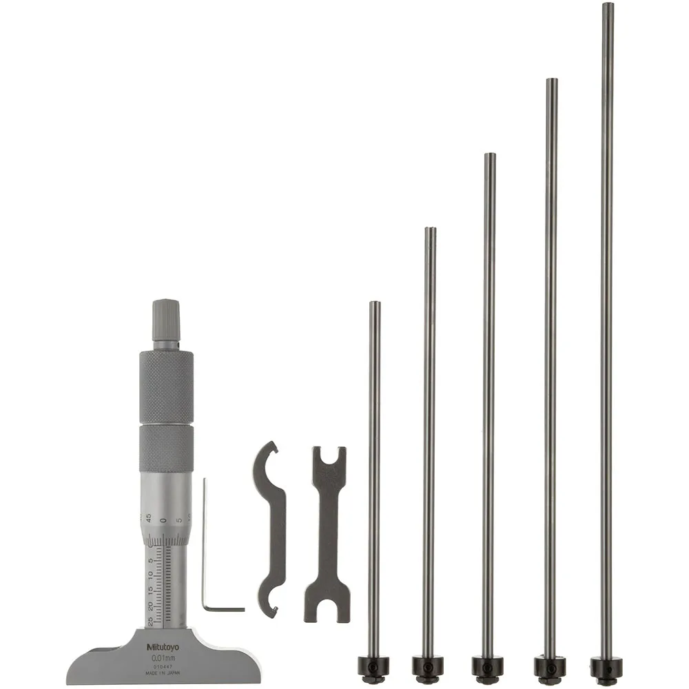 Điểm đặc biệt của thước đo sâu này là bộ 6 đầu nối đi kèm, cho phép bạn tùy chỉnh chiều dài đo theo yêu cầu cụ thể của từng công việc. Các đầu nối này dễ dàng tháo lắp và được gia công chính xác, đảm bảo kết quả đo luôn ổn định và tin cậy. Thước Micrometer Mitutoyo 129-112 không chỉ là một công cụ đo lường, mà còn là một khoản đầu tư thông minh giúp bạn nâng cao hiệu quả công việc, giảm thiểu sai sót và đảm bảo chất lượng sản phẩm.