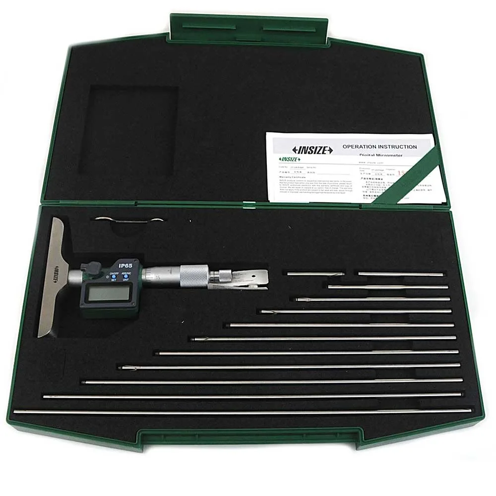 Panme Đo Sâu Điện Tử Insize 3540-300 (0-300 mm/0-12″) là một thiết bị đo lường cơ khí chính xác của thương hiệu Insize, được sử dụng để đo độ sâu của các lỗ, rãnh hoặc bậc trên bề mặt vật thể với độ chính xác cao. Thiết bị này có màn hình điện tử hiển thị kết quả đo, cho phép chuyển đổi đơn vị đo giữa mm và inch, và có độ phân giải cao.