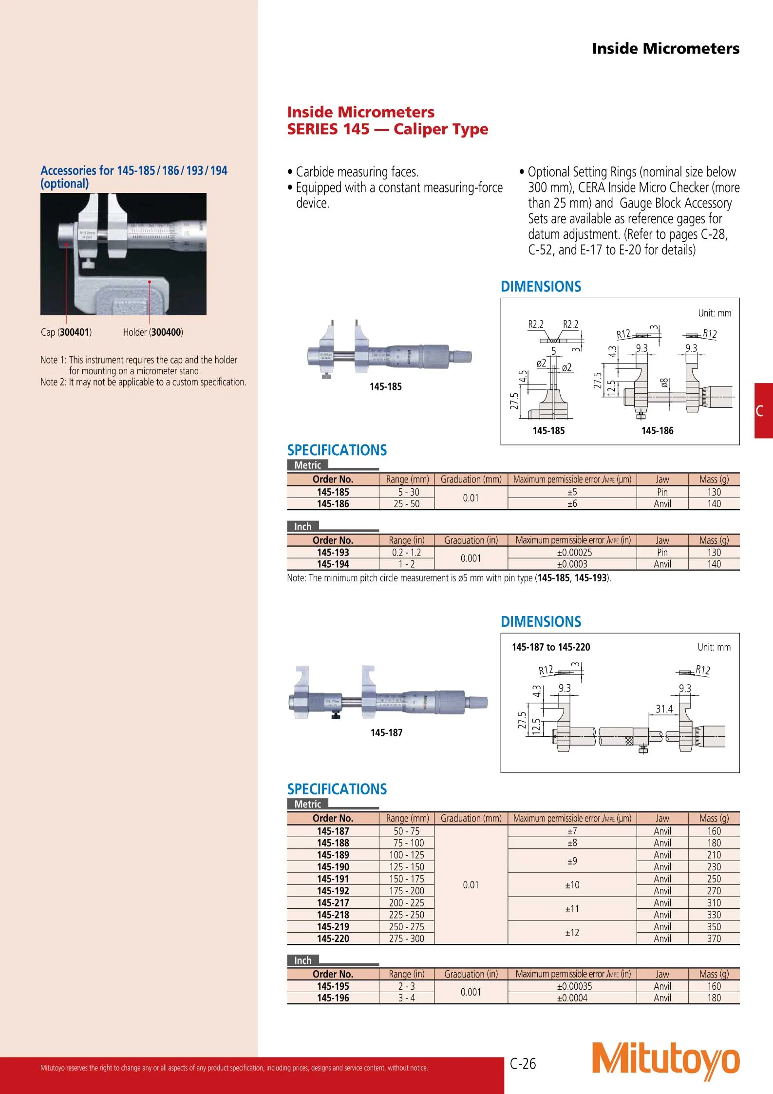 Thân panme được làm từ vật liệu chất lượng cao, chống ăn mòn và chịu được các điều kiện làm việc khắc nghiệt. Thiết kế công thái học giúp người dùng cầm nắm thoải mái và thao tác dễ dàng. Panme Mitutoyo 145-186 không chỉ là một công cụ đo lường mà còn là một trợ thủ đắc lực giúp nâng cao hiệu quả và chất lượng công việc.