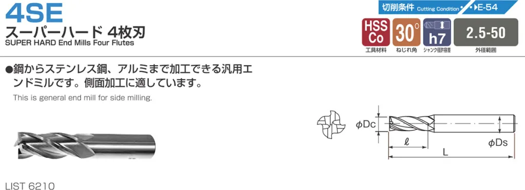 Phay Ngón Nachi List 6210 4me Cắt 16mm 4SE16 là dòng dao phay ngón 4 lưỡi cắt của hãng Nachi, được làm từ thép gió Cobant (HSSCo) và sử dụng trong gia công kim loại. Dòng sản phẩm này với đường kính khác nhau phù hợp với từng nhu cầu gia công.