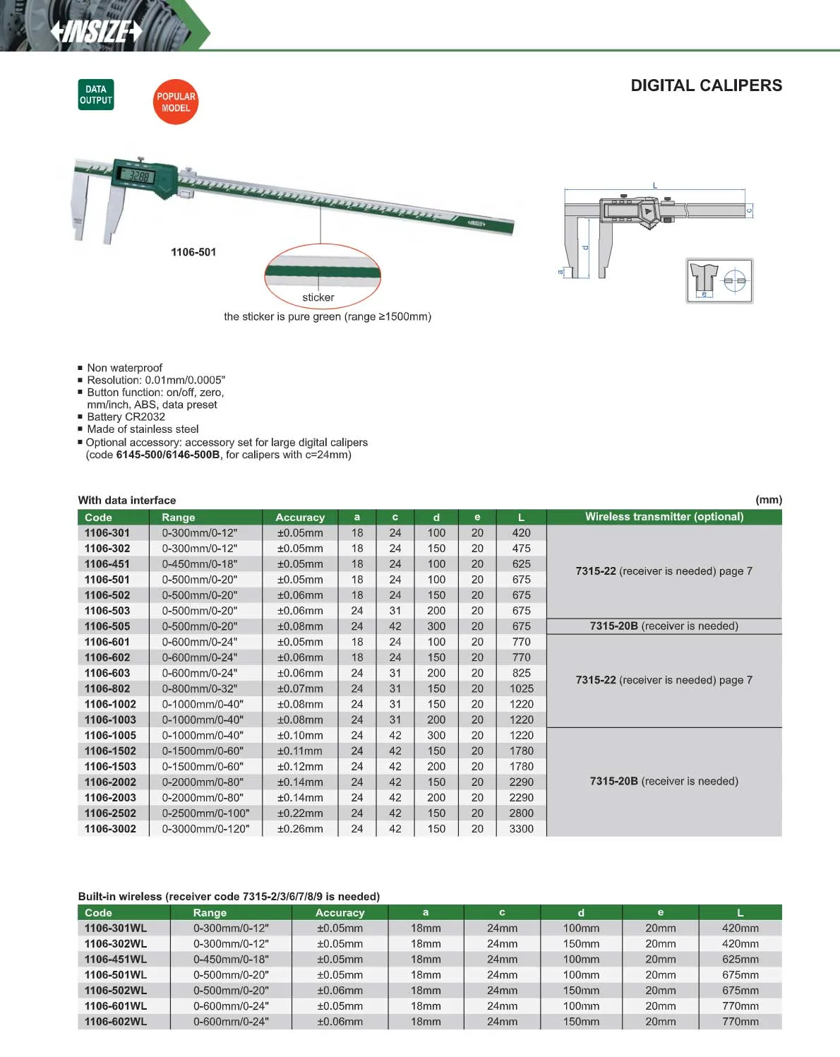 | Phạm vi đo | 0-600 mm/0-24″ |