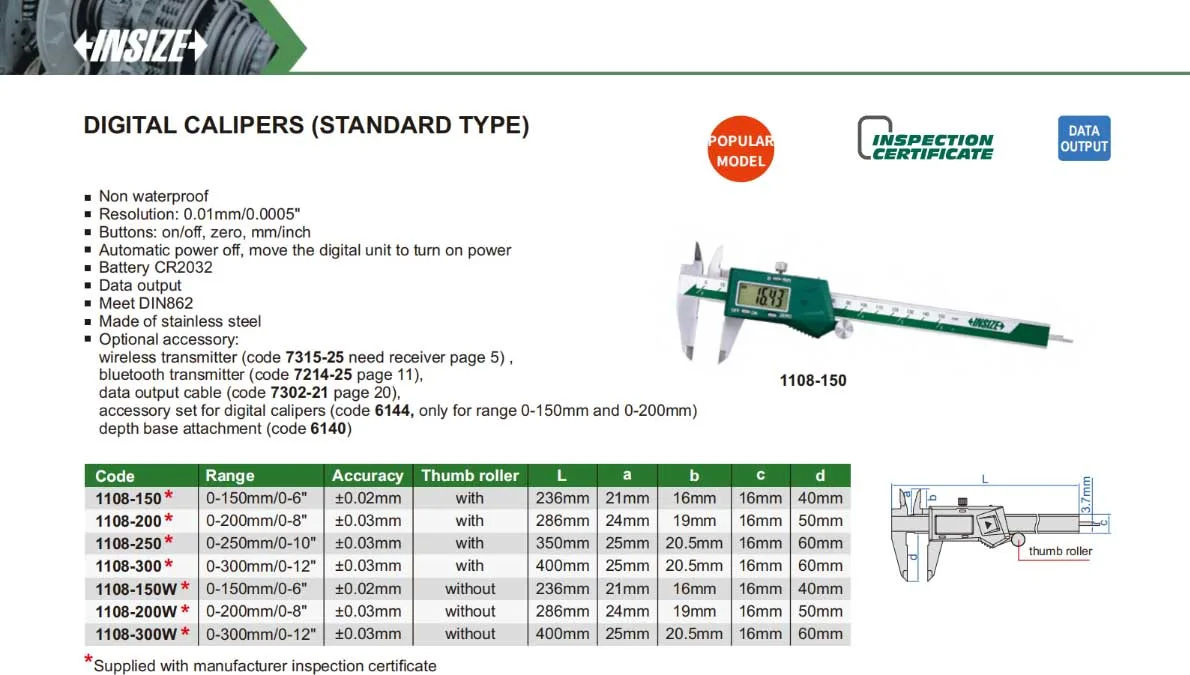 | Dòng sản phẩm | Thước Cặp/Kẹp Điện Tử Insize |