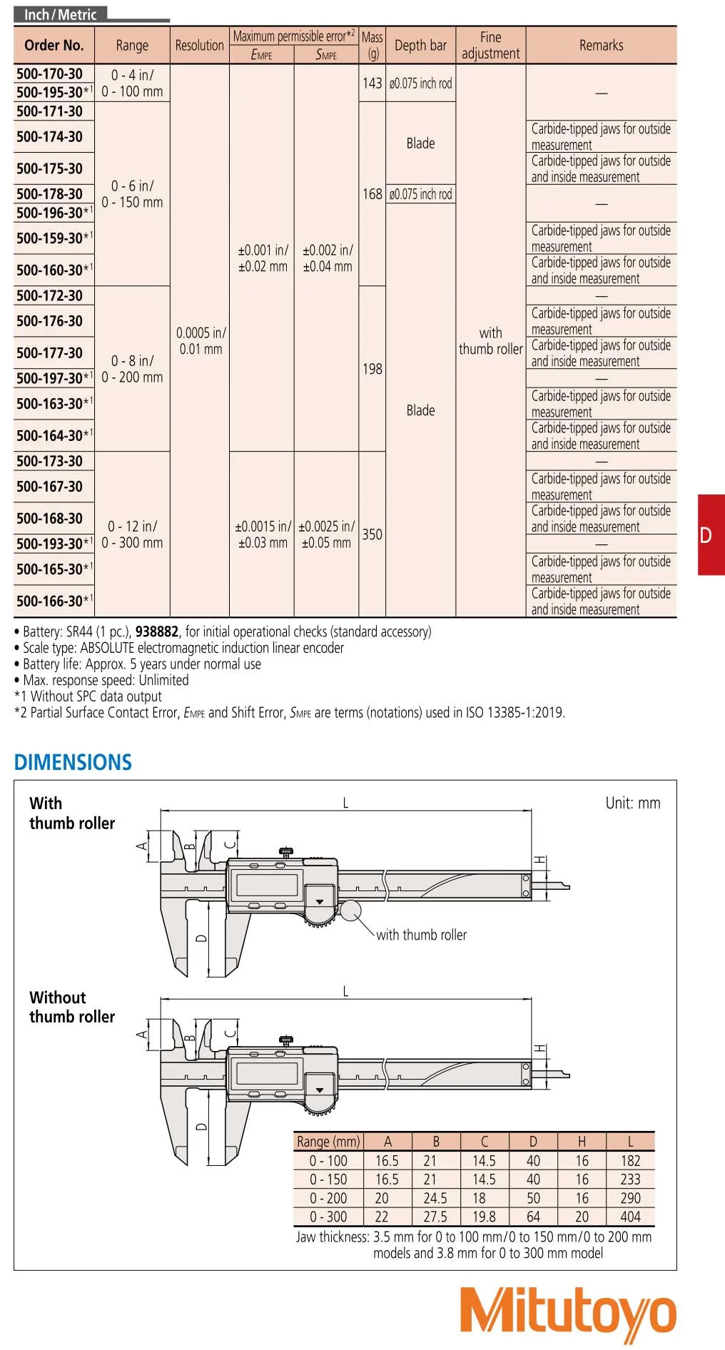 Thước Cặp Điện Tử Mitutoyo 500-196-30 (0-150mm/0-6”) là một thiết bị đo lường chất lượng cao, được sản xuất bởi thương hiệu Mitutoyo nổi tiếng đến từ Nhật Bản. Với phạm vi đo từ 0-150mm (0-6 inch) và độ hiển thị 0.01mm (0.0005 inch), thước cặp này cho phép bạn thực hiện các phép đo chính xác và nhanh chóng trong nhiều ứng dụng khác nhau.