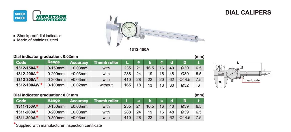 | Dòng sản phẩm | Thước Cặp/Kẹp Đồng Hồ Insize |