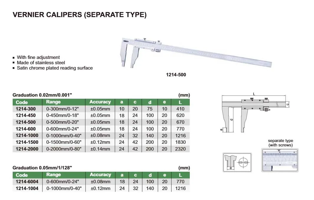 Thước Kẹp Cơ Khí Insize 1214-1000 (0-1000 mm/0-40″) được thiết kế để đo đường kính trong, đường kính ngoài, chiều sâu và chiều dài của các vật thể một cách nhanh chóng và chính xác. Thước cặp Insize được chế tạo từ vật liệu cao cấp, đảm bảo độ bền và tuổi thọ lâu dài ngay cả trong môi trường làm việc khắc nghiệt.