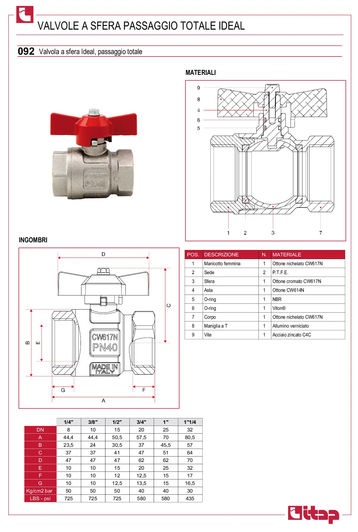 Van Bi Tay Bướm Itap.092 (thường được gọi là Art. 092) là một model van bi đồng thau chất lượng cao, xuất xứ từ Ý (Italy), nổi bật với thiết kế tay vặn hình bướm (tay chữ T) và kết nối hai đầu ren trong (Female x Female). Sản phẩm này được đánh giá cao nhờ chất lượng sản xuất tại Ý, độ bền bỉ và mức chi phí hợp lý cho nhiều dự án khác nhau.